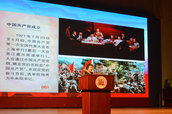 第一个议程由学院党委书记孙晓娟对全体新生进行入党启蒙教育。她一开场就代表我院党委班子及全体老师热烈欢迎2022级新生,激励新生以学院为傲,为学院争光。随后,孙晓娟向同学们介绍了中国共产党的发展历史,通过一个个生动形象的党史故事,讲述了在中国共产党的正确领导下,在无数先烈前仆后继为人民解放和人民幸福奋斗之下,百年前积贫积弱的中国,如今焕然一新。通过举例抗洪战士李珂、年轻的航天设计师们、玉兔设计者张艳丽等为祖国发展做出的贡献,展示了“后浪”们的力量,以及“后浪”们发出的“请党放心,强国有我”的最强音浪,表明祖国的事业发展离不开新一代中国青年的不懈奋斗。通过引用习近平总书记寄语青年的话勉励在座的新生立大志、成大才、担大任,努力成为堪当民族复兴重任的时代新人,以理想为因,行实为果,以青春之我,成就青春之中国。最后,全体起立,在孙书记的带领下,大家共同掷地有声地喊出“青春有悔,强国有我”,响亮的口号回荡在艺术会堂,激发了同学们的爱国爱党情怀,鼓舞了同学们向党组织靠拢的信心,使同学们明白作为时代新人的责任与使命。