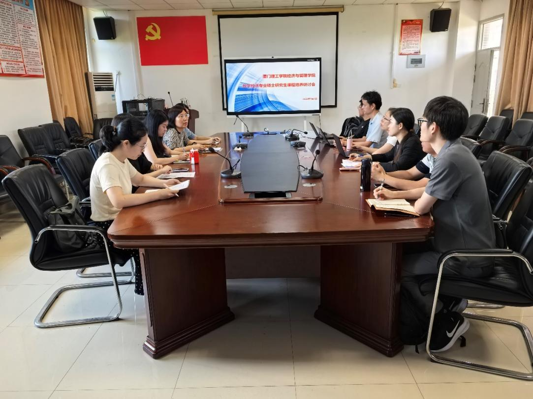 为使数字经济专业硕士骨干教师明确教育部数字经济专业硕士点的建设要求,加强数字经济专业课程建设,2025 年 7 月 2 日下午 14:30,经济与管理学院(海峡商贸学院)在明理园 7-309 召开数字经济专业硕士研究生课程教学研讨会。会议由数字经济学科带头人姜红波教授主持,数字经济硕士点负责人邵其赶及骨干教师参会。首先,邵其赶老师介绍了《研究生教育学科专业简介及其学位基本要求(数字经济)》、《数字经济硕士专业学位研究生学位论文与申请学位实践成果基本要求(试行)》及我校数字经济专业硕士人才培养方案。其次,任课教师依次就《数字经济学原理》《数据分析与经济决策》《数据要素理论与实践》等 10 门课程的教学目标、教学内容、教学方式、课时安排等进行深入交流。最后,姜教授充分肯定了与会教师对所授课程的认真思考及悉心准备,并从数字经济专业师资队伍建设、课程建设、校企合作等方面提出具体要求。此次会议为数字经济专业硕士研究生的人才培养明确了方向,对提升数字经济专业硕士人才培养质量具有重要意义。