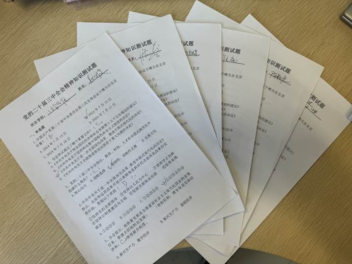 宣讲会后,还组织大家观看中央党校(国家行政学院)研究室主任沈传亮的《深入学习贯彻习近平总书记关于全面深化改革的一系列新思想、新观点、新论断和党的二十届三中全会精神》专题辅导视频,并进行了“党的二十届三中全会精神”知识测试。