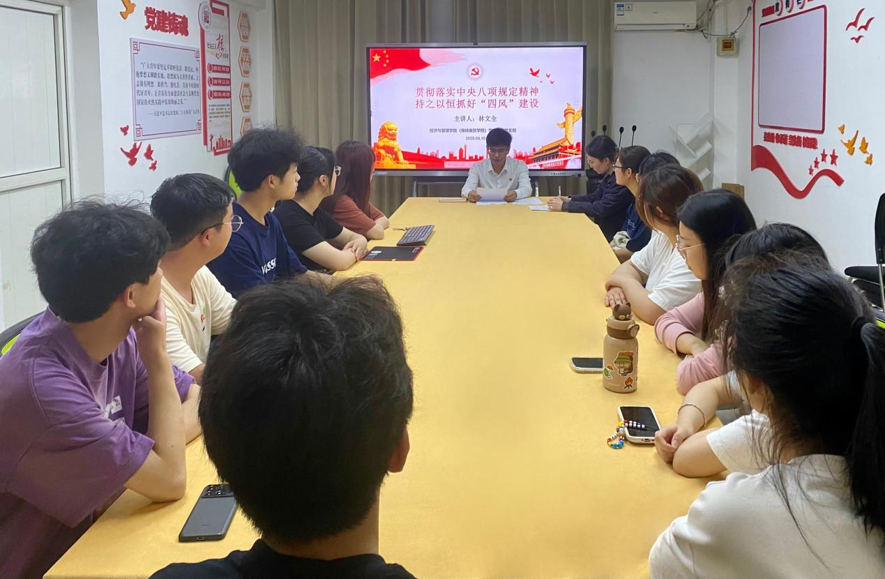 为提高学生党员党性修养,推动学校深入贯彻中央八项规定精神学习教育走深走实,4月10日,经济与管理学院(海峡商贸学院)学生第二党支部邀请联系指导支部的党员领导干部、学校党政办主任林文全在知行苑党建活动室为全体党员讲授“贯彻落实中央八项规定精神 持之以恒抓好‘四风’建设”专题党课,学生第二党支部书记陈佳娴主持。