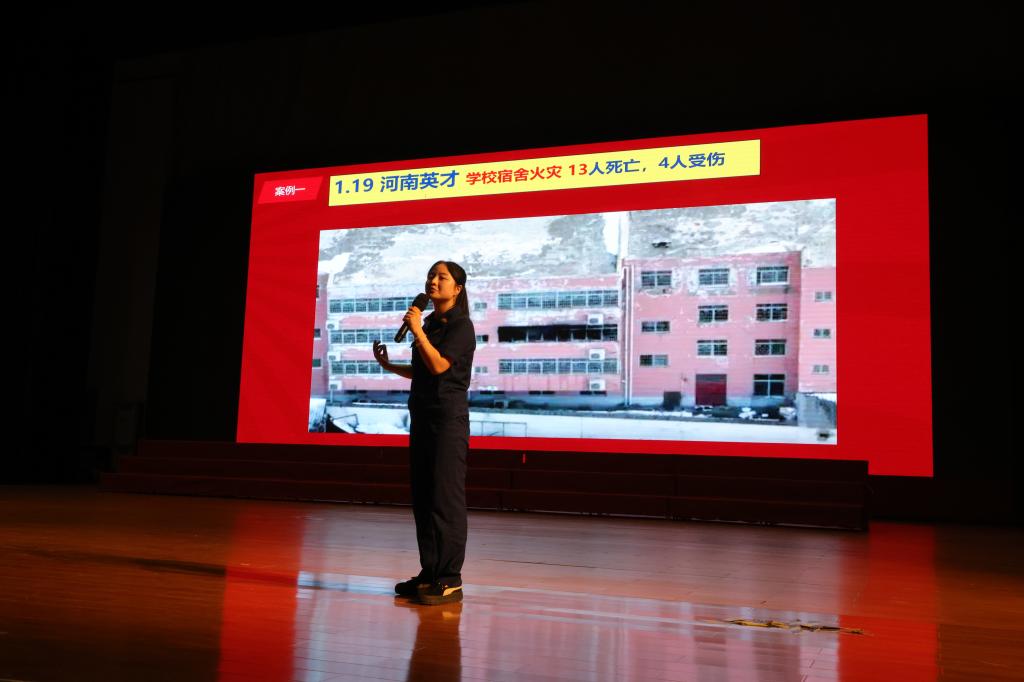 魏警官运用丰富经验和专业知识,结合学生生活案例,深刻阐述校园火灾的严重性。她讲解了如何应对火情,如报警、初期扑救及避免盲目行动等常识,同时指导燃气泄漏等紧急状况的处理方法,确保同学们能迅速有效应对。魏警官还深入分析了消防安全责任,通过事故案例警示,强调消防安全对个人、校园乃至社会的重要性,并特别关注宿舍安全,提出防范建议,鼓励同学们保持警惕,共筑安全防线。