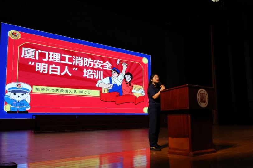 为进一步提升新生的消防安全意识及整体安全防范能力,在校保卫处的牵头下,10月9日下午经济与管理学院(海峡商贸学院)联合外国语学院、影视学院在艺术会堂举办新生消防安全知识讲座。本次讲座共计有900余名新生参加,共同学习消防安全知识。讲座特邀集美区消防救援大队的魏可心警官作为主讲嘉宾。