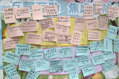 随着展板慢慢变得丰富,像是一个巨大的心灵树洞,装着许多无处安放的烦恼,也藏着许多温暖的回应。即使是没有参与活动的路人,也被吸引停下脚步,看着展板上的内容。有人若有所思,有人露出微笑,还有人拍下照片分享给朋友,一起共鸣与感受善意。